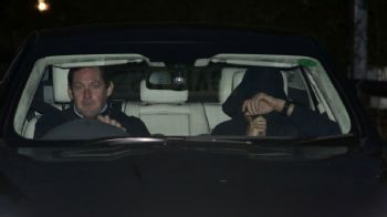 A man believed to be Jose Mourinho, right, departs Chelsea's training centre on Thursday.