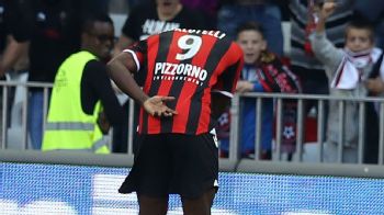 Mario Balotelli bows to fans after scoring against Nantes.